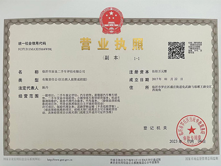 臨沂市辰良二手車評估有限公司由臨沂市工商局注冊成立,公司秉承